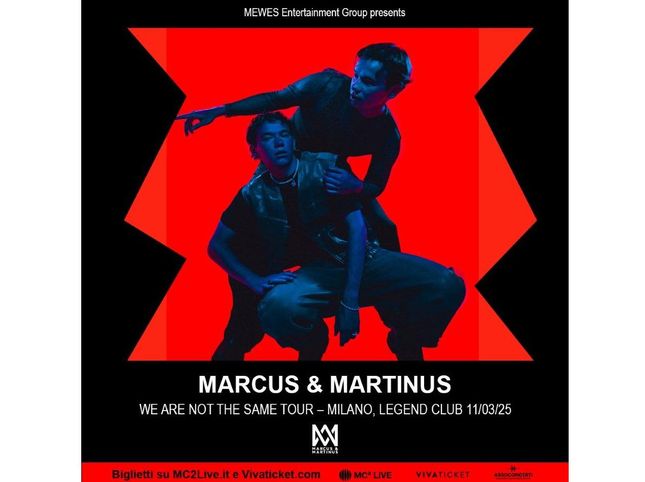 In attesa di rappresentare la Svezia con il brano “Unforgettable” all’Eurovision Song Contest 2024, in programma nella città svedese di Malmö dal 7 all'11 maggio prossimi, Marcus & Martinus annunciano nuove date europee per il “We are not the same Tour” 2025. Della serie di appuntamenti dal vivo, fa parte anche un concerto in Italia fissato per l’anno venturo.