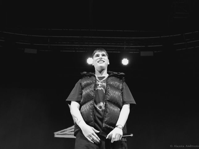 Tra gli ospiti svettano Tony Boy e Artie 5ive, con cui Yugi scolpisce una precisa parte della scaletta da cui emergono tre dei nomi più in auge del rap di nuova generazione, e Noyz Narcos (“il mio rapper preferito”, dice la voce pugliese) che è una sorta di padre artistico di Yugi. Nel suo fiume Stige di parole ci sono spietatezza, profondità, consapevolezza. Sì, nel rap di Yugi c’è una maturità che lo rende interessante anche a un pubblico più adulto. Solo a volte, in piccoli e teneri momenti di entusiasmo per quanto raggiunto in questi primi anni di percorso, “Guagliò quanto siete belli…”, sembra dimostrare l’età che ha. Il live, proprio come le sue canzoni, è schietto, affilato. Ha uno spirito underground capace, però, di arrivare ai grandi numeri: “I nomi del diavolo” è il secondo album più ascoltato nel primo semestre del 2024. Può e deve crescere ancora, strutturandosi sempre di più, ma Yugi dal vivo non ha nulla di plasticoso, non flirta con il pop paraculo e neppure con il pubblico.