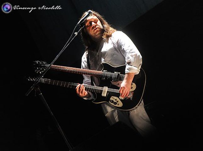 “E’ vero che esiste una registrazione filmata di quel tour intitolata ‘Genesis in concert’. Ma noi abbiamo sempre pensato che quelle immagini non rendessero giustizia alle scenografie e agli effetti visivi dello show raccontandolo solo in parte” spiega prima dello spettacolo Sébastien Lamothe, la mente del gruppo che sul palco interpreta il ruolo di Mike Rutherford imbracciando una replica della sua celebre chitarra a doppio manico (“l’originale”, rivela, “si trova nel soggiorno di un fan tedesco, che se l’è aggiudicata grazie a un concorso radiofonico”). “Abbiamo discusso a lungo tra di noi, prima di deciderci a questo passo, ma poi ci è sembrato un logico proseguimento del nostro cammino. In fondo molti fan, e noi con loro, considerano ‘A trick of the tail’ e ‘Wind and wuthering’ come un’appendice alla produzione dei primi Genesis, quelli più avventurosi e in un certo senso più sperimentali a cui i Musical Box dedicano le loro ricostruzioni storiche e musicali. In questo show si respira un’atmosfera simile a quella di ‘The lamb’, è come se ne fosse la prosecuzione: i tre schermi che utilizziamo sono gli stessi di quel tour, arricchiti stavolta dalla proiezione dei filmati e dagli effetti delle luci laser. Anche senza Gabriel, i Genesis di quel particolare periodo storico erano ancora un gruppo di musicisti protesi a spostare ulteriormente i loro limiti musicali e ad utilizzare in modo inventivo la tecnologia che avevano a disposizione: quelli del ’76 furono concerti molto spettacolari sia dal punto di vista visivo che musicale (anche grazie alla presenza della doppia batteria, “The cinema show” e “Los endos” sono tra i momenti più forti dello show, ndr) e per questo abbiamo deciso di ricrearli. Come sempre, abbiamo avuto la fortuna e il privilegio di poter contare sul pieno appoggio degli stessi Genesis, in particolare di Mike Rutherford e di Tony Banks che ci hanno permesso di riascoltare i nastri originali delle canzoni nello studio di registrazione di proprietà della band, The Farm. Per noi il loro sostegno non è solo importante ma indispensabile, da ‘storici’ del gruppo quali ci sentiamo di essere sarebbe frustrante non poter accedere direttamente alle informazioni di prima mano e ai materiali originali utilizzati sul palco, luci, diapositive e strumentazioni vintage. Ci siamo guadagnati, credo, la loro fiducia, i Genesis sono coscienti del fatto che ci preme ricostruire i loro spettacoli con la massima accuratezza e questo probabilmente li rassicura. E’ stato decisivo anche il contributo dei membri delle